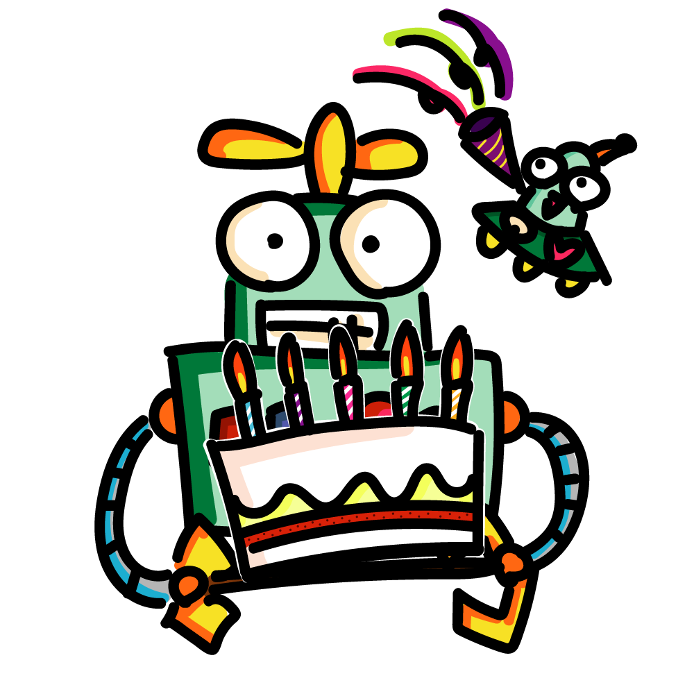 誕生日を祝うロボットとUFO